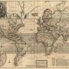 A New & Correct Map of the WHOLE WORLD Shewing ye Situation of it’s Principal Ports. Viz the Seas, Kingdoms, Rivers, Capes, Ports, Mountains, Woods, Trade-Winds, Monsoons, Variations of ye Coompass, Climates, &c.” Herman Moll (1654-1732) came to London in about 1678 from Germany or Holland and worked as an engraver for Moses Pitt, among others. He clearly had a talent for making interesting friends and provided maps for Daniel Defoe’s Robinson Crusoe and Jonathan Swift’s Gulliver’s Travels. From 1689, he had his own London shop. Maps of a uniquely Moll character began to appear during Queen Anne’s reign, and his individual style of mapmaking grew increasingly more distinct as his career progressed. “