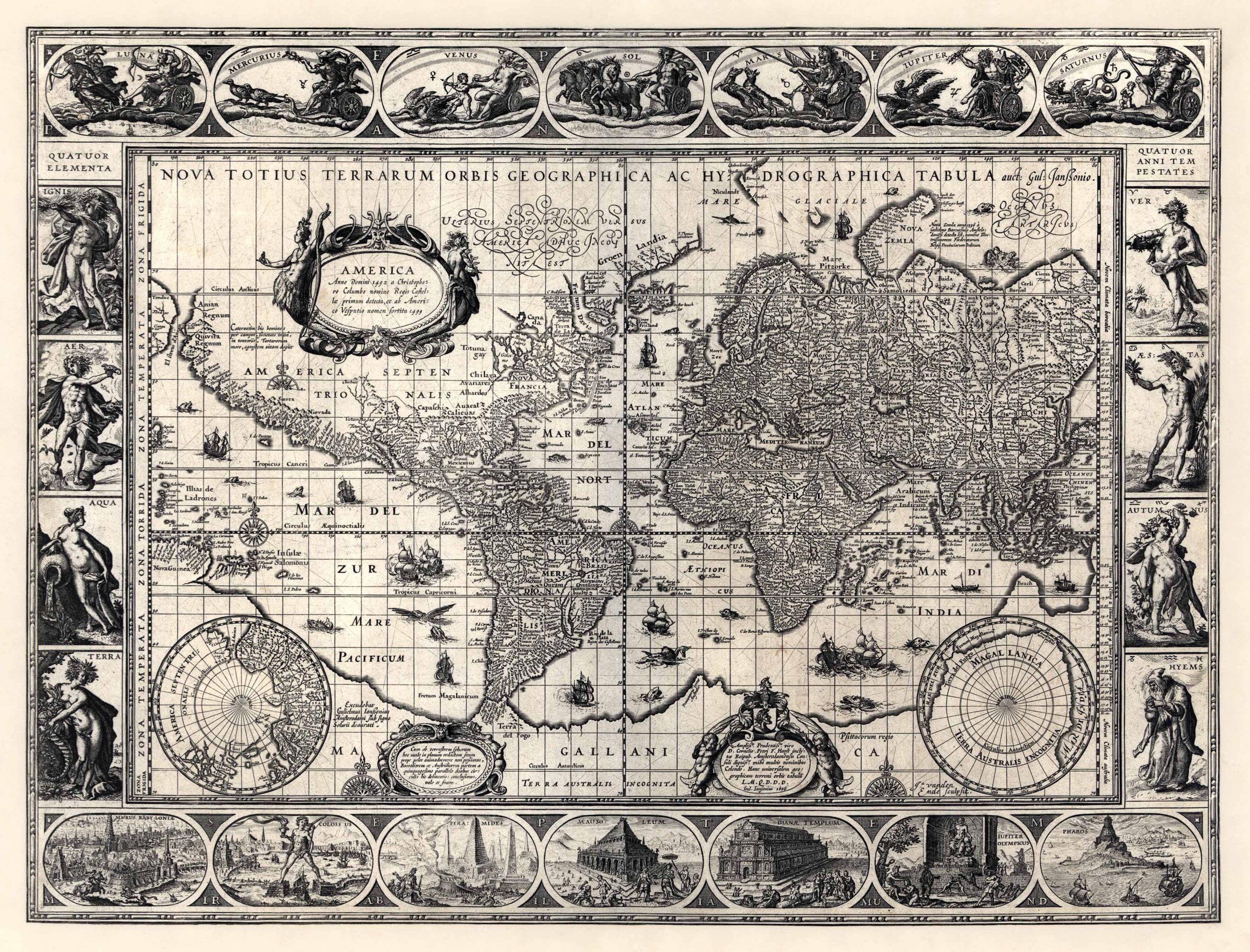 Old World Map by Willem Blaeu in 1606