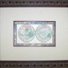 Beautiful miniature map of the Northern and Southern hemispheres by Johnson dated 1864. This map is a steel plate engraving with original hand coloring. Map shows the poles at their center, and at this time most of the Antarctic continent is unknown, as well as much of the arctic ocean. Tastefully framed with marble paper and an old world wood molding.