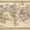 The Mitchell company was one of the first to try out the new technique of engraving on steel plates, experimenting with steel almost 20 years before the rest of the publishing industry. Hewas printing with steel in the early 1830s; the general switch to steel was approximately 1850. During the early years of the company, Mitchell published mainly maps and travel guides. In1860, Mitchell started producing “Mitchell’s New General Atlas”,and Mitchell Sr. retired and turned the business over to his son of the same name. The New General Atlas was published until1893. Today Mitchell maps are sought after for their fine engraving, bright coloring, and attention to detail. They aresome of the finest maps produced in the 1860’s. This map produced in 1867, has Mitchell’s unique floral border, and beautiful hand coloring. This map details the world on Mercator’s Projection. Explorers routes and dates, and unexplored regions are noted. Continents, countries, major cities and mountain ranges are illustrated.