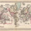 Art Source International is proud to offer this very rare map of the World. It was produced for S. Augustus Mitchells New Atlas of the United States, published for a single year by Ziegler & McCurdy, in 1874. This single edition is one of the most sought after editions of any American published maps. The maps are distinguished by their decorative “airplane propeller” border. We have found only one map by Ziegler and McCurdy in over 35 years of map sales records and have never, till now, offered any for sale.