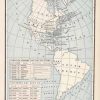 George F. Cram produced this historical map showing the period of exploration in the Americas from 1491-1886 for Crams Unrivaled Atlas of the World in 1889. The map details where each of the explorers landed and the date. Also included on this map are two charts showing the six noted men sent to explore by each nation (Spain, France, & England), and the length of periods of discoveries, settlements, wars, etc. from 1491 to 1886.