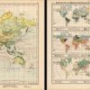 This map was produced for the 1902 Diercke, Schul-Atlas fur Hohere Lehranstalten, (Diercke Education Atlas for Higher Educational Institutions) This atlas was prepared and issued by C. Diercke and E.Gaebler for the Westermann publishing group in Braunschweig. With the help of fellow cartographer, Eduard Gaebler, Carl Dierckes maps became a staple in the geography classrooms in Germany. From 1893 until his death, Diercke was editor of all the maps for Westermann Verlag. All text is in German with full color that has remained quite bold. A wonderful example of the fine German engraving work of the time. These beautiful, topographic maps show the physical attributes and contours of the land as well as identifies cities, countries, rivers, mountains, boundaries, and more. They are double sided maps (shown side by side in image) which have corresponding information to the country on the opposite side. This tri-fold map shows the world on Mercator projection, identifying vegetation and marine currents on the front. The back of this map has nine sections of smaller Erdkarten in Mercatorprojektion (World maps in Mercator projection) showing: J’hrliche Regenmenge (Annual Rainfall), Regenzeiten der Erde (Rainy Seasons of the Earth), Meeresgebiete (Marine Areas), Verbreitung der wichtigsten Tiere (Dissemination of key animals), V’lkerkarte (International Map), Religionskarte (Religions), Juli-Isothermen (July isotherms), Linien gleicher W’rmeschwankung (Lines of equal heat fluctuation), and Luftdruck und Winde im Januar (Air pressure and winds in January).