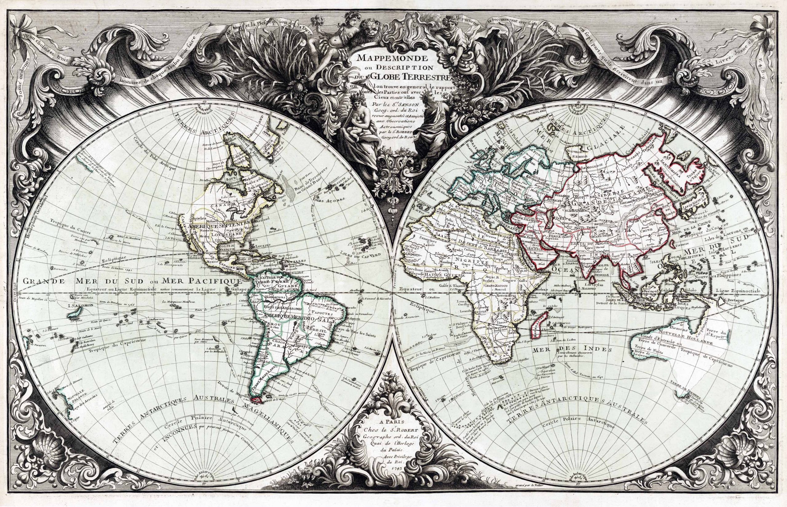 Jacques Nicolas Bellin spent over fifty years at the French Hydrographic Service where he was appointed the first ‘Ingenieur hydrographe de La Marine’. During his term of office there he was commissioned to carry out major surveys, first of the coasts of France and later of all the known coasts of the world. These tremendous undertakings resulted in the production of a very large number of sea charts of the highest quality which appeared in many editions with varying numbers of charts to the end of the century. He was appointed ‘Hydrographer to the King’ and was a member of the Royal Society in London.