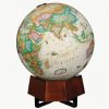 In 1954, Frank Lloyd Wright began work on the pyramidal shaped Beth Sholom Synagogue in Elkins Park, Pennsylvania, now a registered National Historic Landmark and open to the general public. This 12-inch illuminated table top, antique styled globe and stand was adapted from one of Wright’s designs for a hexagonal walnut and copper planter in the building. The stand has a beautiful Walnut finish.