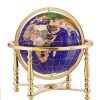 Gemstone luxury. This exquisite desktop accessory is a 13 inch diameter blue lapis ocean globe beautifully inlaid with over 25 different semi-precious gemstones that have been hand carved into the shape of countries and continents. A gold-plated stand and meridian with built-in compass cradles this lustrous globe. Hundreds of place names.