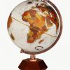 Frank Lloyd Wright (1867-1959) is widely considered to be America’s greatest architect. An adaptation of a hassock designed by Mr. Wright for the Malcolm Willey House (1933) in Minneapolis, MN. This is a bronze metallic globe ball with a cherry finish Base with die-cast metal semi-meridian.