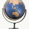 A sleek finish lends an air of modern opulence to the crisp metallic blue and gold of the Tallinn globe ball, while the textured pewter-finish base and full brass meridian offer classical contrast.