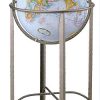 Artistic angles. The progressive design of this angled metal floor stand with 16 inch diameter blue ocean globe and pewter finished die-cast meridian gives this model an air of sophistication.