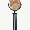 Since ancient times, the column has stood as a functional and decorative standard. This all-metal globe base is reminiscent of that form, yet is crafted to reflect modern design. The three round black metal legs are supported and capped by tiered discs wrought from the same steel. This stand is an elegant addition to a living room, den, office or reception area.