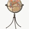 Handcrafted warmth. A contemporary interpretation of a classic design, the Marin is uniquely handcrafted from wrought iron with a rustic textured finish. The distinctive stand beautifully spotlights the 16″ raised relief parchment ocean globe with an antique brass-plated meridian. A dramatic choice for home or office.