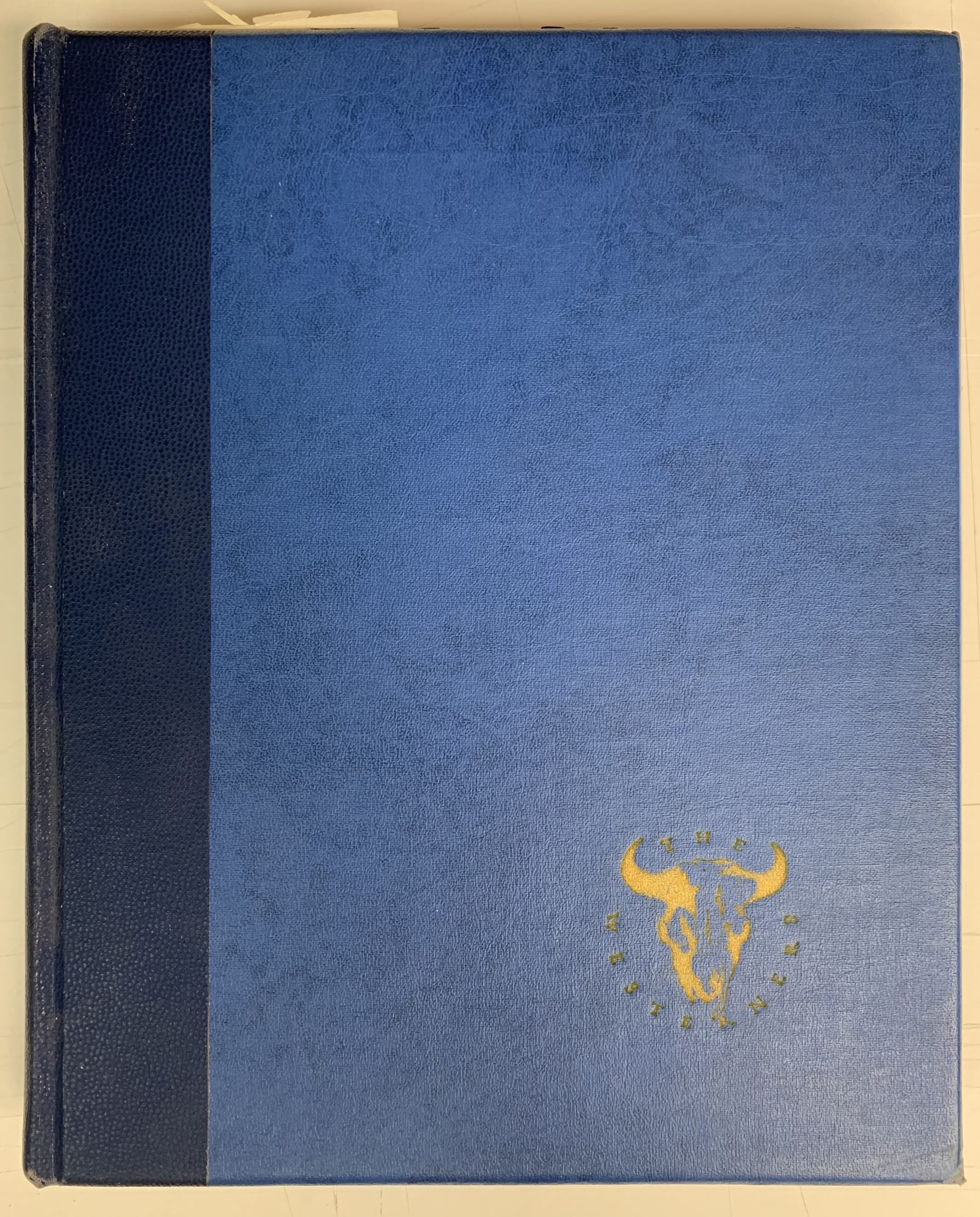 The Westerners Brand Book 1850 to 1950 was published by the Los Angeles Corral in 1951. This book encompasses historical content on the wild west in the 100 years between 1850 and 1950; it includes interesting and unique facts pertaining to the great West. This book is in very good condition, all pages are clear and intact, aside from the front two opening pages that have detached from the binding. Hardcover is in good condition.