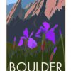 14er Boulder Iris poster by artist Blair Hamill. A bucolic hike from Chautauqua Open Space to the foot of the Flatirons in Boulder, Colorado offers peace and an abundance of natural surroundings. Our poster art print brings wild iris to the foreground along the Big Bluestem and Mesa trails while eliciting memories of hiking, dining, music, and gatherings of friends.
